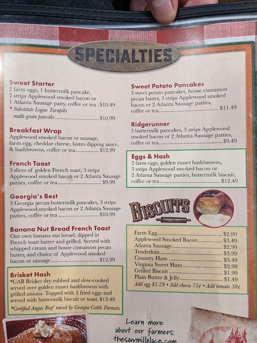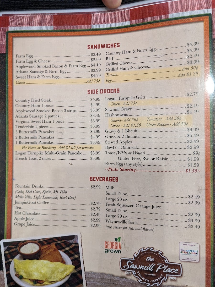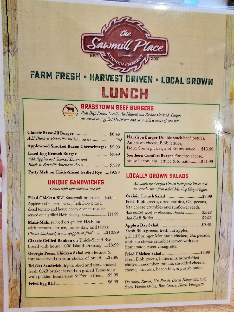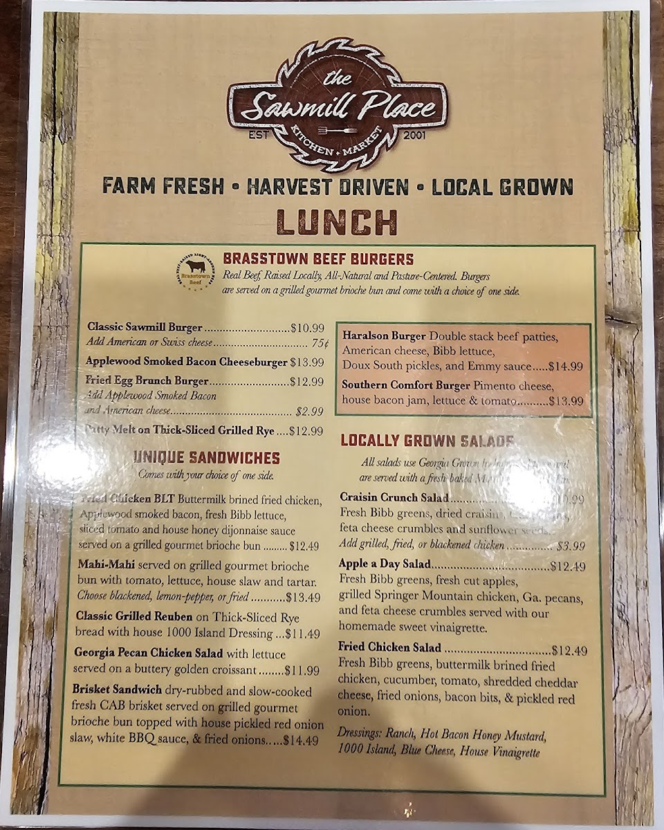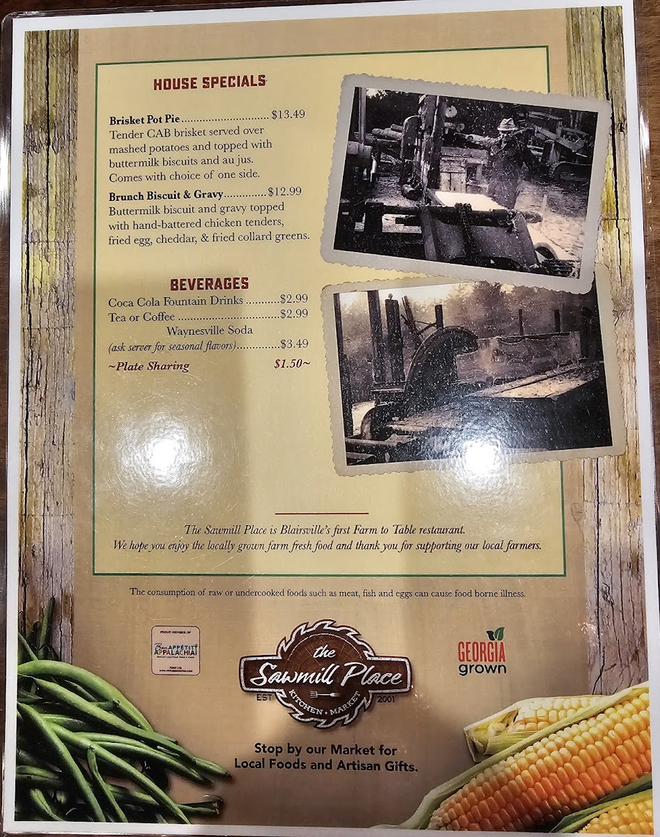Nestled in the heart of Blairsville, Georgia, The Sawmill Place Menu brings a delightful blend of rustic charm and mouthwatering dishes. With a cozy ambiance and warm service, it’s the perfect spot to enjoy hearty meals made from fresh, local ingredients. Whether you're craving classic comfort foods or something with a twist, there's something for everyone. From savory steaks to flavorful salads, every dish is crafted to satisfy both your hunger and your taste buds. The menu offers a variety of options, each thoughtfully prepared to highlight the rich flavors of the region. So, whether you’re here for a quick bite or a leisurely meal, you can always count on a delicious experience at The Sawmill Place.